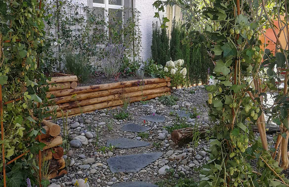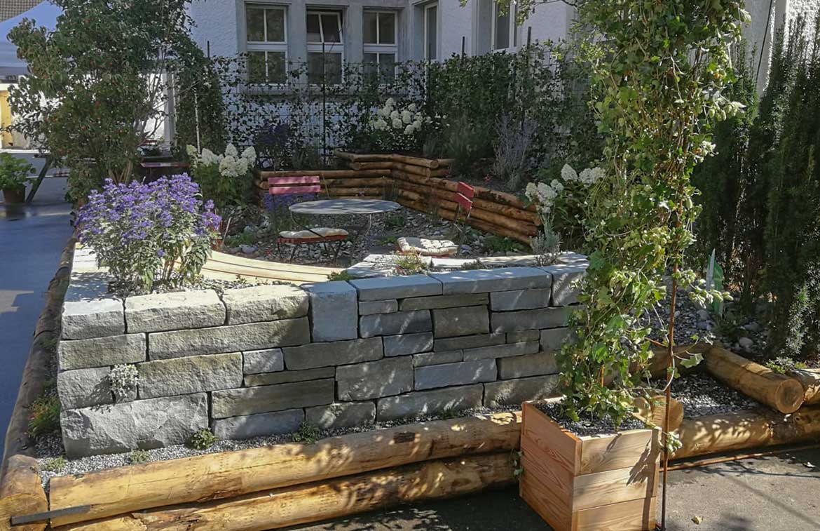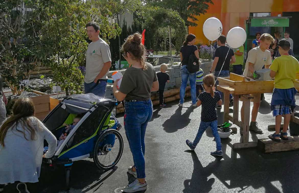 Natürlich liessen wir es uns nicht nehmen, mit einem eigenen Stand an der «Gwärbi» präsent zu sein. Der speziell auf dem Schulhausplatz angelegte Garten lud die Besucherinnen und Besucher zum Verweilen und Begehen ein und stiess auf grossen Anklang. Auch während einiger Wochen nach der Ausstellung war er beliebter Treffpunkt, Pausenplatz, Plauderecke für Lehrer…