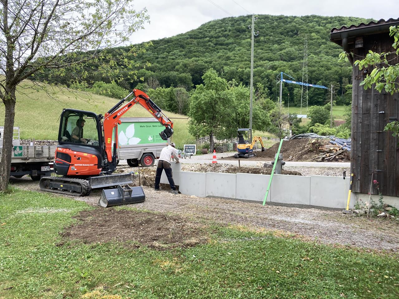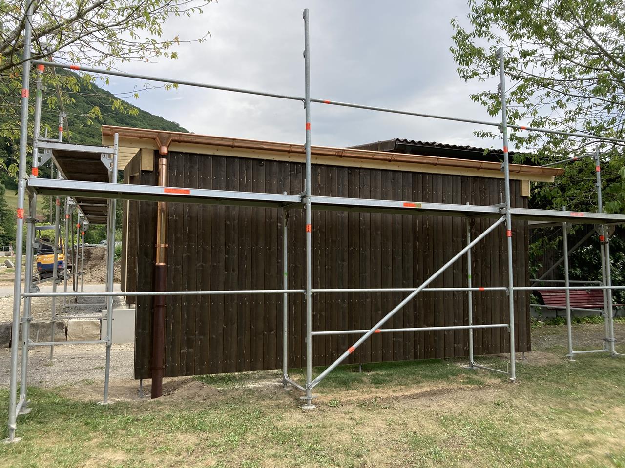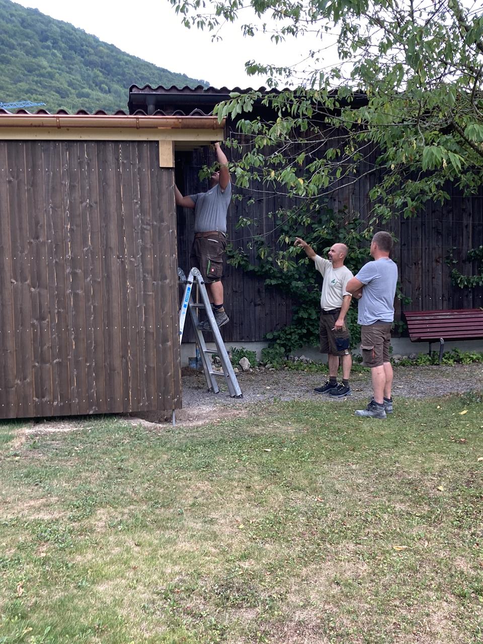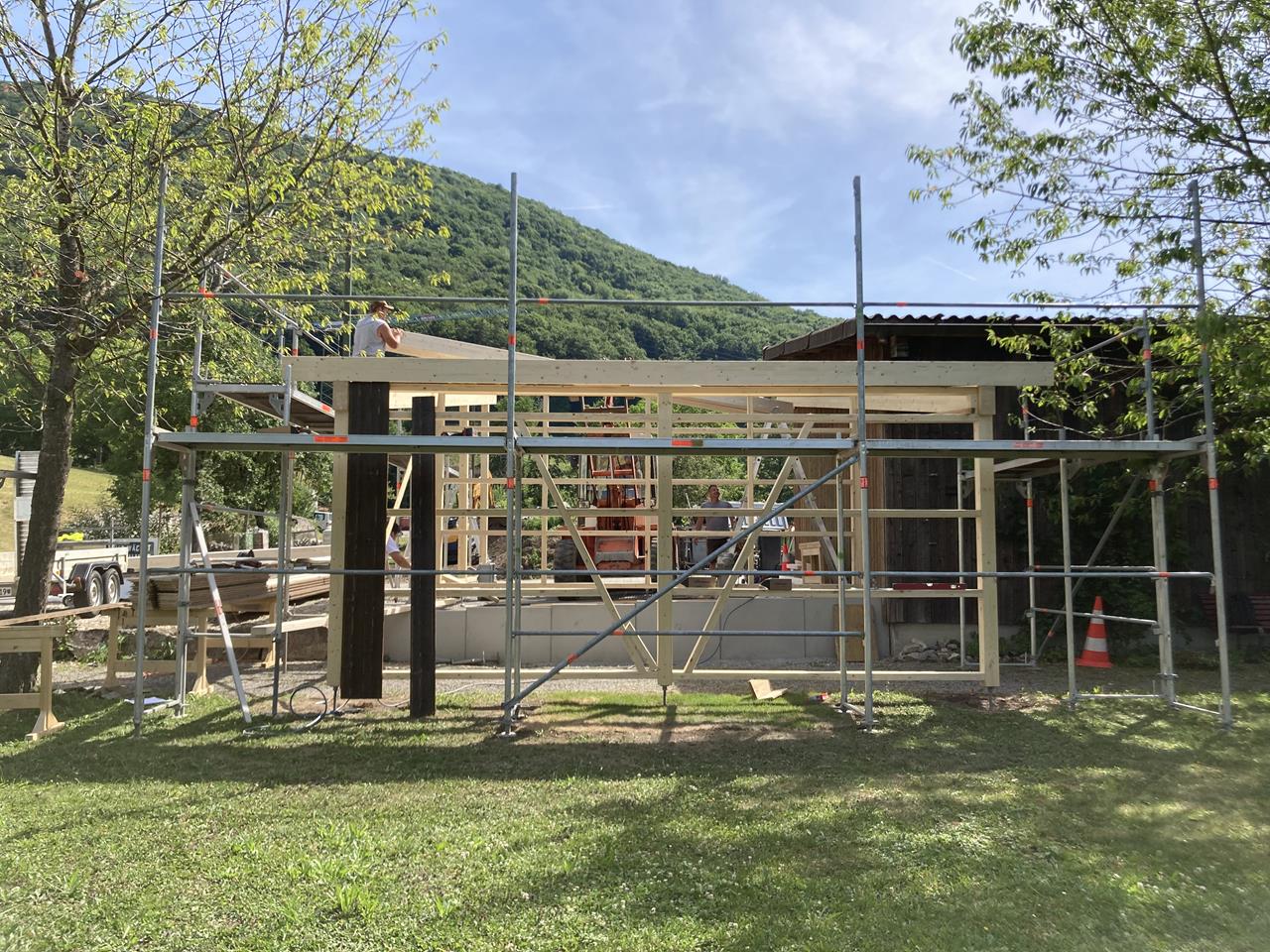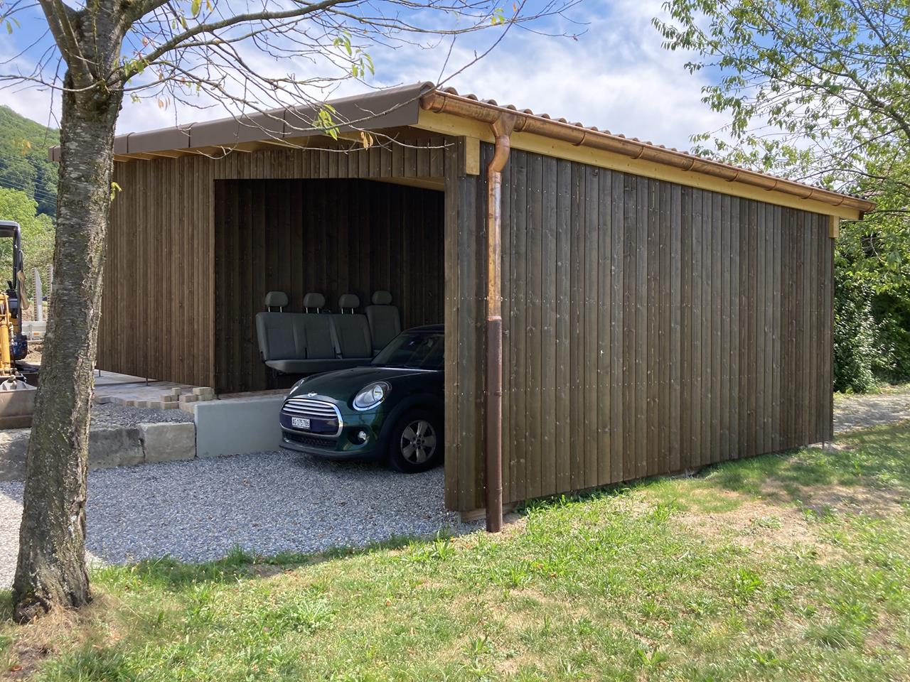 Unser Sohn Florian hat die Pläne gezeichnet und das Baugesuch vorbereitet. Nach längerem Hin und Her lag endlich die Baubewilligung vor und der Holzbauer konnte im Juni loslegen. Innert kürzester Zeit wurde unser Projekt realisiert. Das Berner-Team freut sich über den Unterstand für unsern Betrieb - und Sara ist glücklich über ihren gedeckten Parkplatz für ihr Fahzeug!
