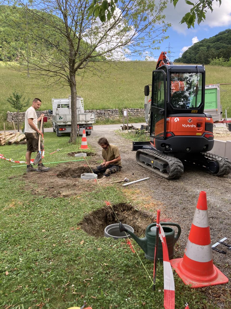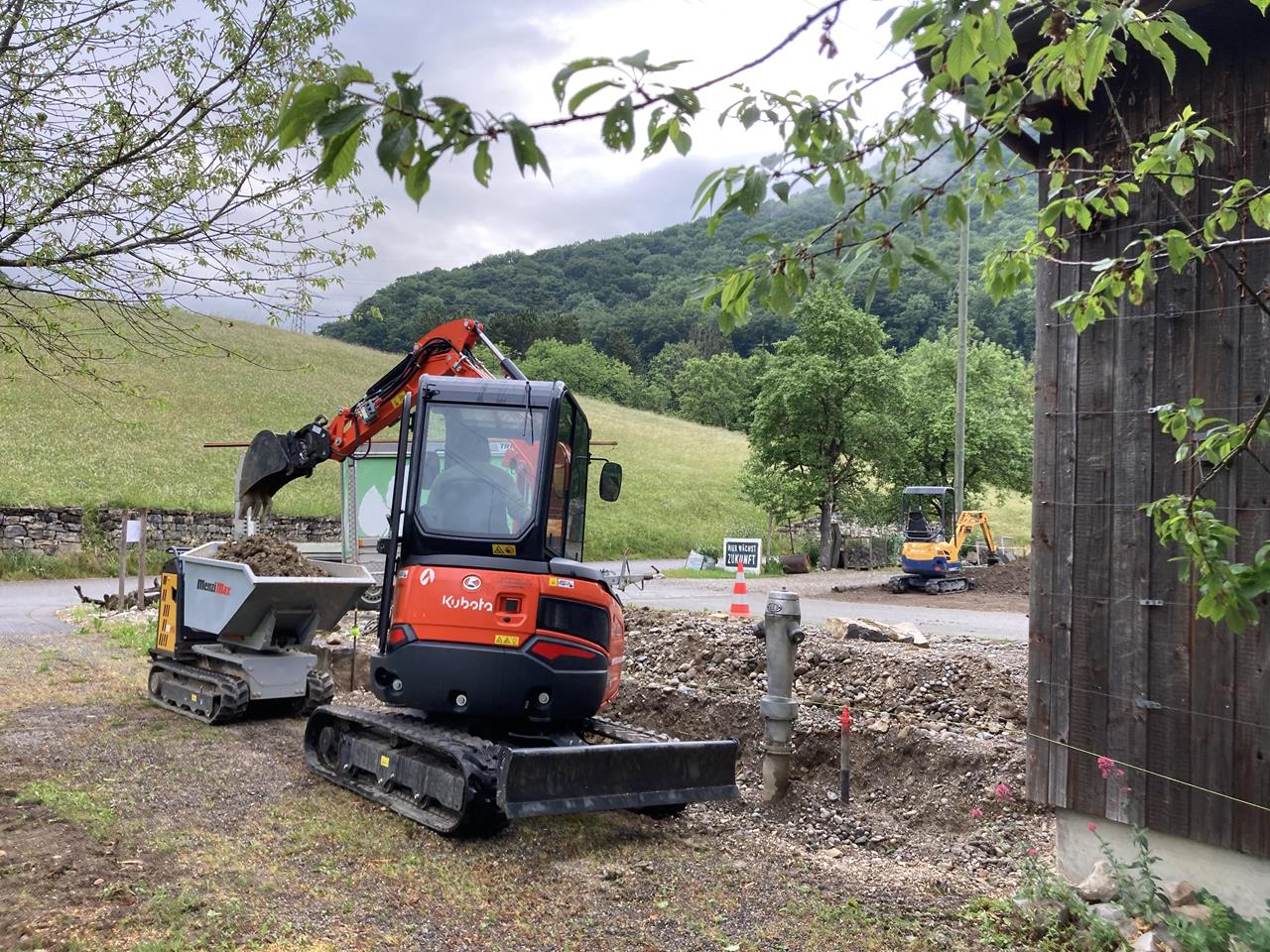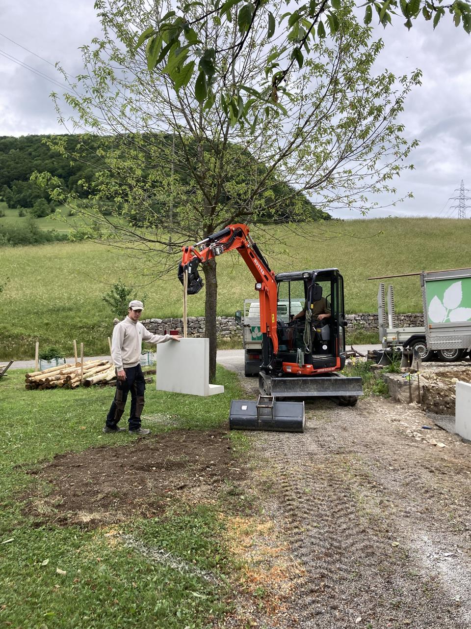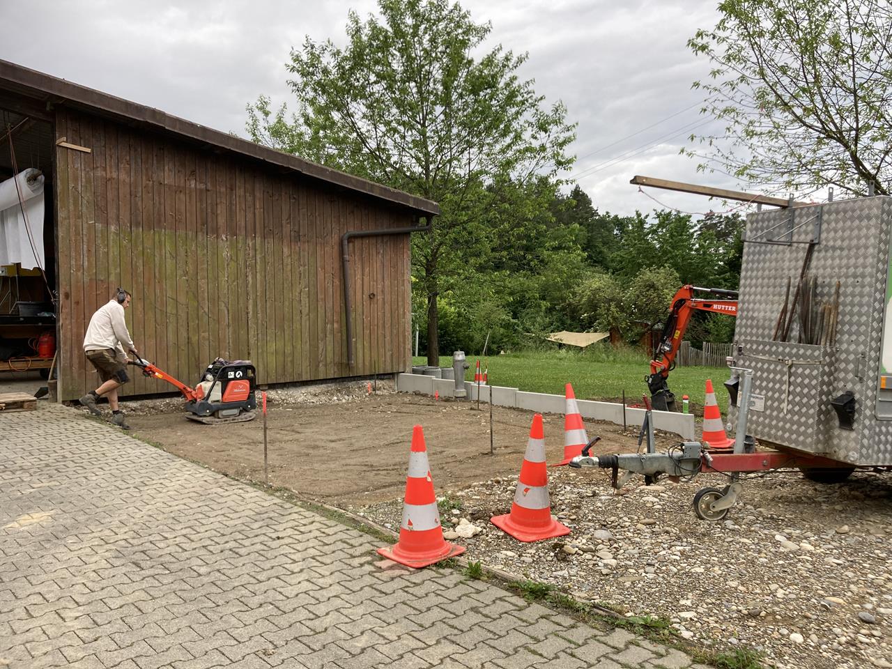 Unser Sohn Florian hat die Pläne gezeichnet und das Baugesuch vorbereitet. Nach längerem Hin und Her lag endlich die Baubewilligung vor und der Holzbauer konnte im Juni loslegen. Innert kürzester Zeit wurde unser Projekt realisiert. Das Berner-Team freut sich über den Unterstand für unsern Betrieb - und Sara ist glücklich über ihren gedeckten Parkplatz für ihr Fahzeug!