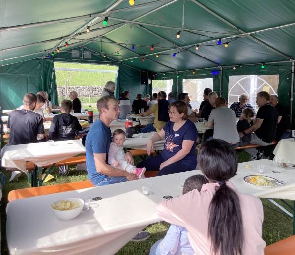 Eingeladen waren alle Mitarbeiter der letzten 50 Jahre - sofern wir diese noch auffinden konnten. Am Samstag, 29. April 2023 fanden sich an einem der seltenen trockenen Frühlingstage 100 Personen im Giebel ein.