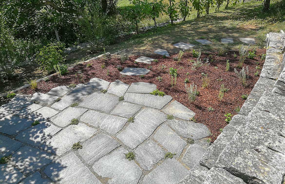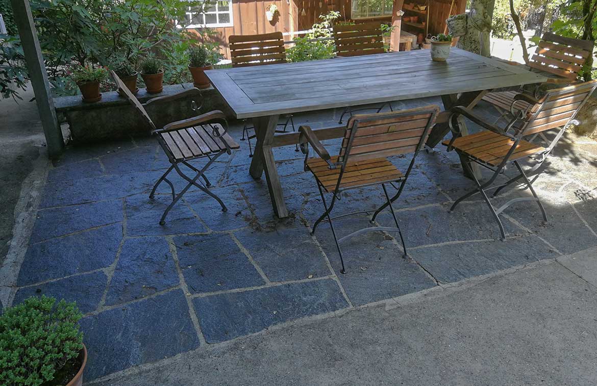 Wir verarbeiten meistens Naturmaterialien wie Natursteinplatten, Rundkies, Mergel, Holz, Gartenplatten oder Pflastersteine.
