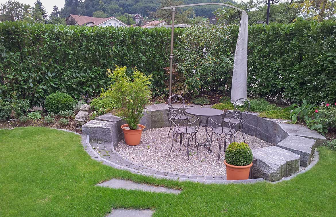 Harmonisch im Garten eingebettet, versteckt als lauschige Ecke oder prominent als Hingucker und Platz für schöne Feste: wir gestalten ihren Sitzplatz nach Ihren Wünschen und verwirklichen mit unsern Ideen Ihren Aussenraum-Traum.