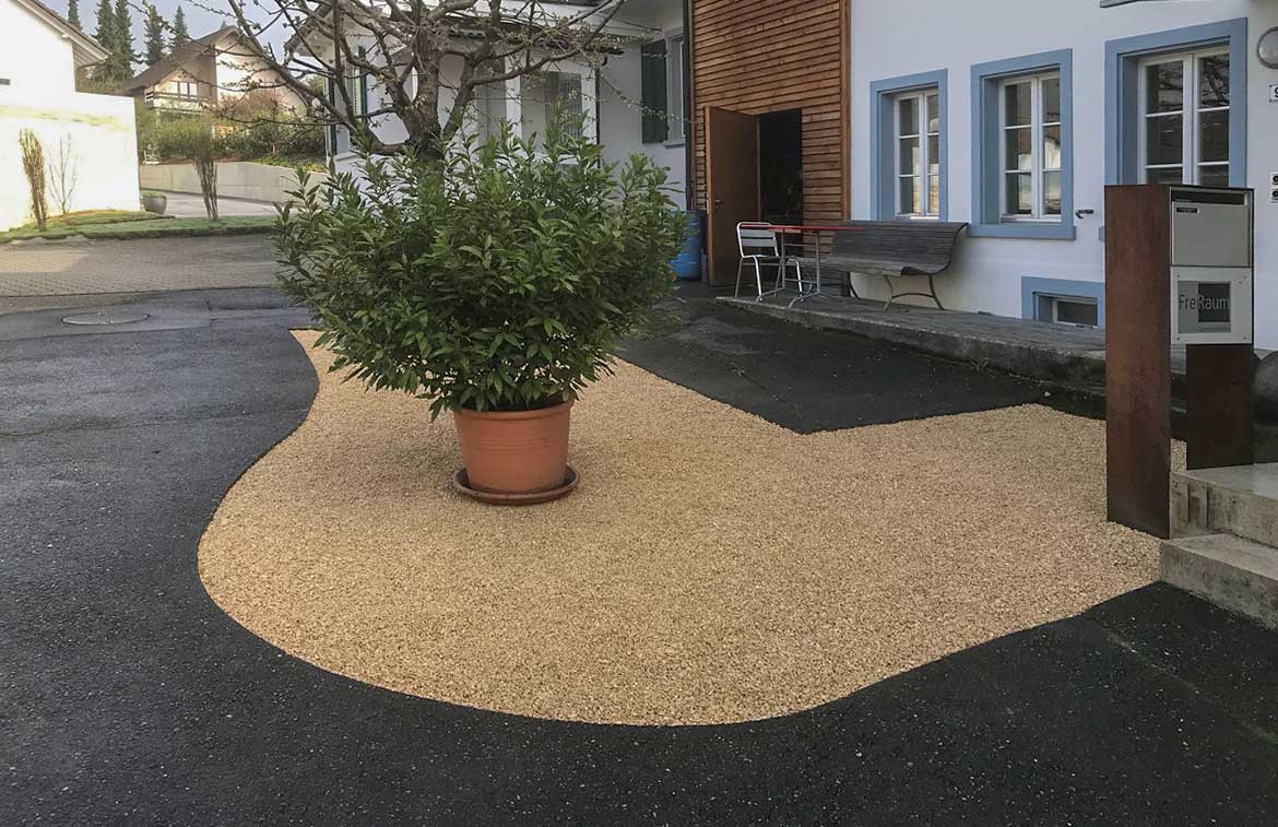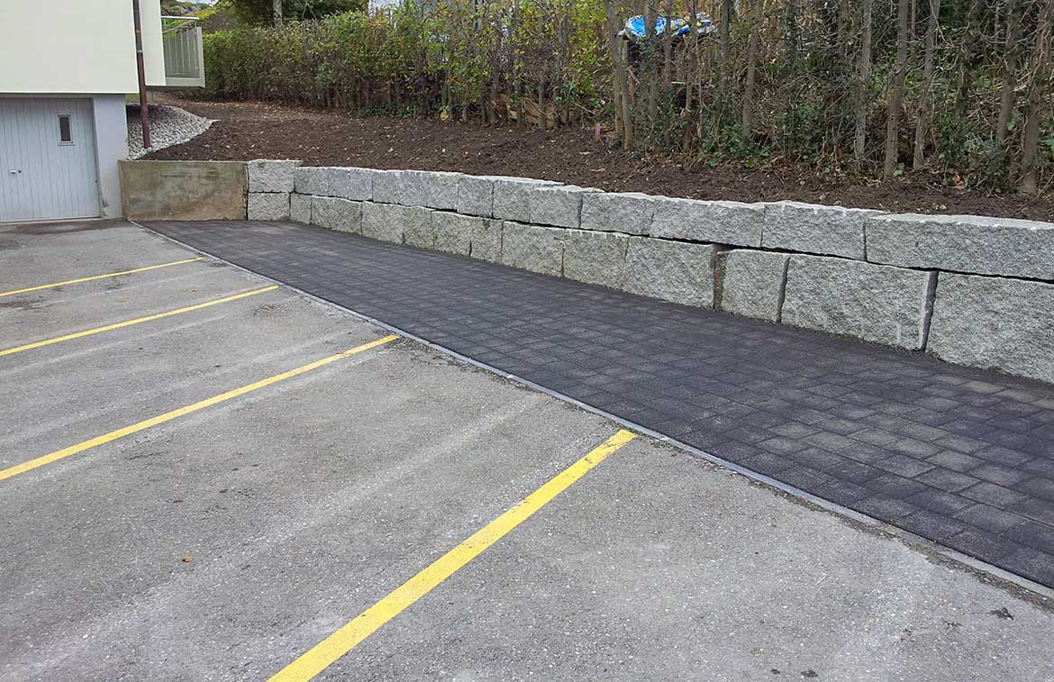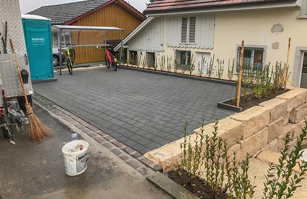 Ihren Parkplatz, den Abstellplatz von Zwei-, Drei, oder Vierrädern wie auch verschiedenste Arten und Formen von Vorplätzen legen wir gerne für Sie an.